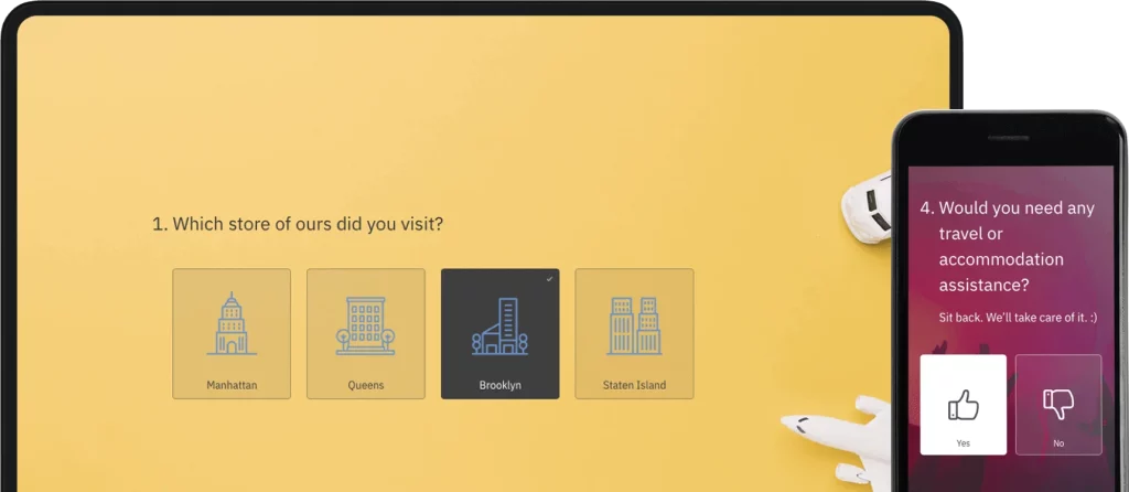Conversational surveys that are mobile-friendly as over 70% of participants take surveys from mobile devices. Subway, couch, or coffee breaks; your respondents can give feedback at their convenience