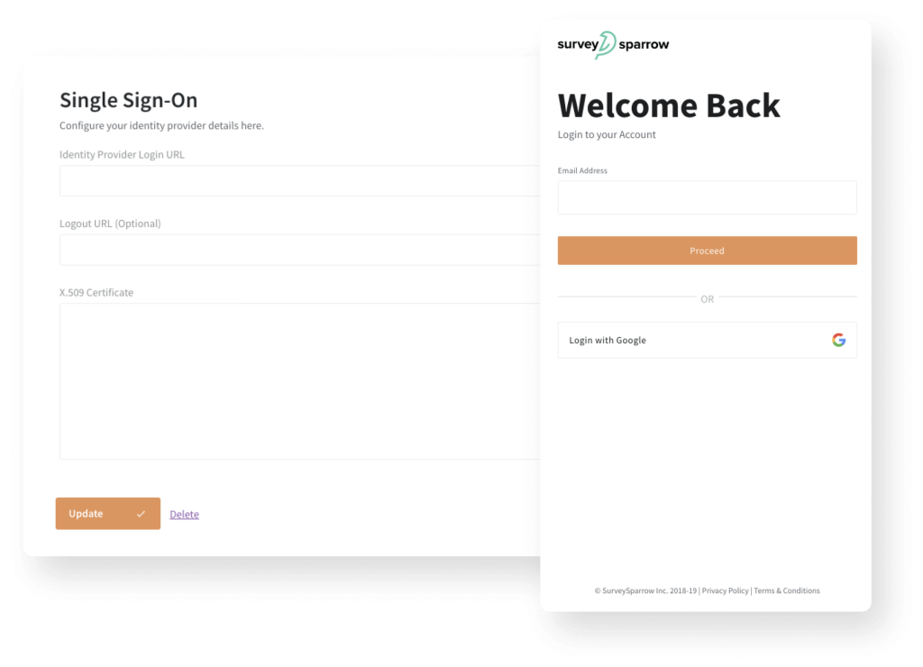Login to SurveySparrow account using your organizational credentials with SSO. One login for all your apps using Single Sign-on. Avoid the juggle.