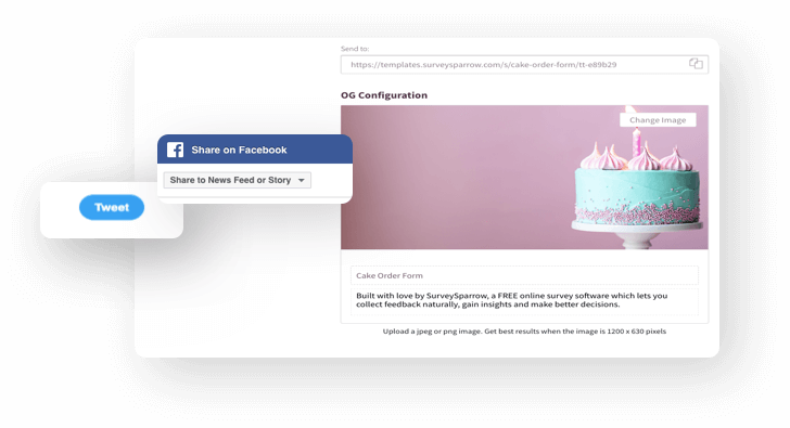 Share surveys on popular social media channels. Configure the meta tags, description, and add a unique image before sharing. Let it truly stand out.