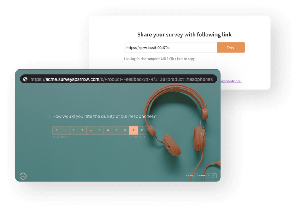Just a click to share your surveys effortlessly