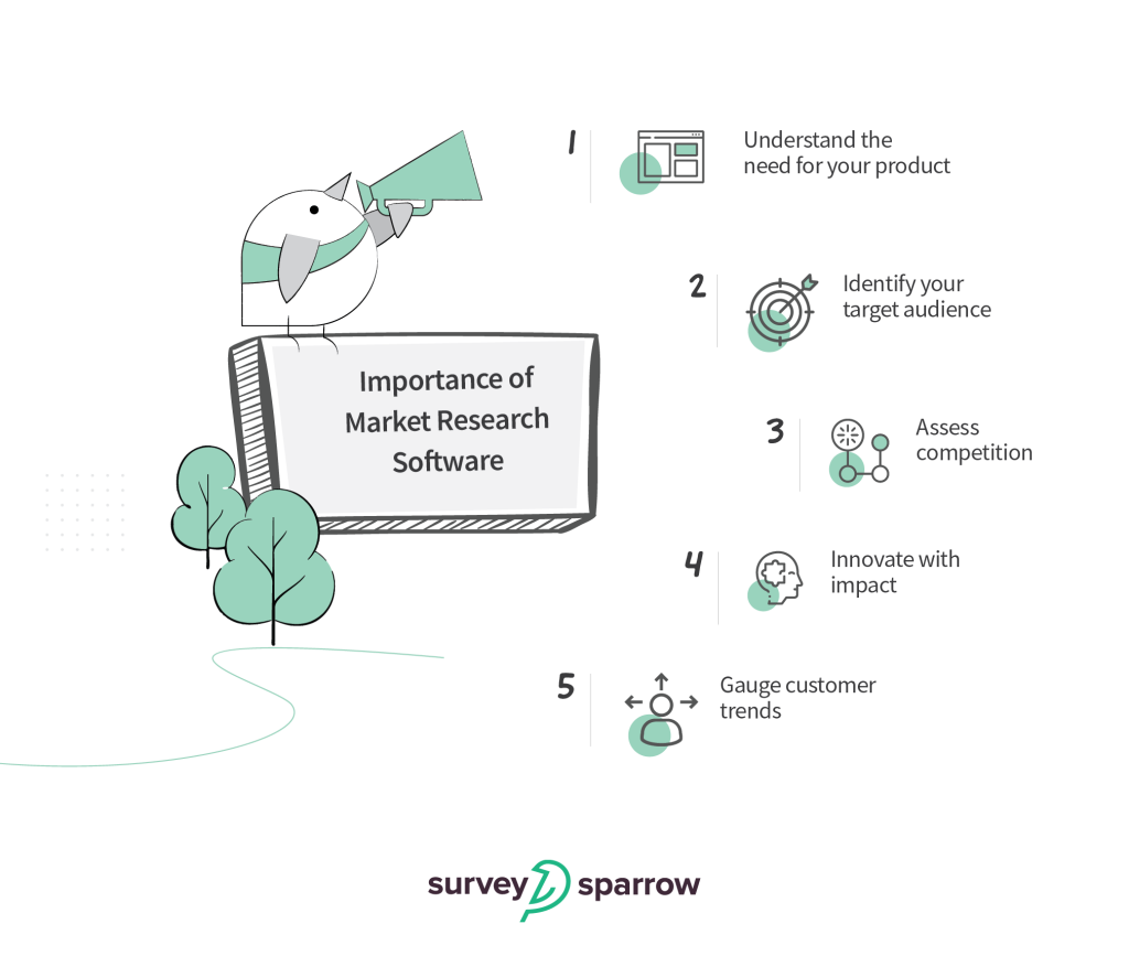 When you launch your product, you would possibly be locking horns with the well-known names in the market. But don’t let your product be engulfed in the overwhelming competition which can be tough to beat. Instead, a market research software will help you analyze who is your biggest competition, how to tackle them, and even beat them in the future.
