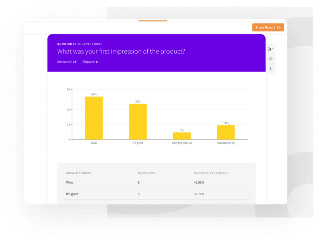Share market research surveys to position your product aptly, price it just right, perform competitor analysis, identify market opportunities, solve challenges, and make better business decisions. Create an engaging survey, share it online or offline, and gain rich insights.