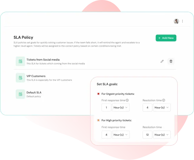 Customize service level agreements (SLAs) for your tickets to ensure clear service commitments between you and your customers. Get clear notifications and actionable steps for every commitment you make.