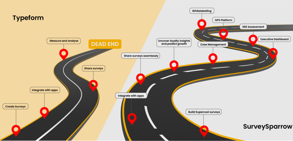 With that said, if you’re here to evaluate us as a Typeform alternative, or simply looking for an alternative to Typeform, let us tell you one thing. You’re already one step closer to creating & running experience management programs that win you customer hearts and not just deals. So, let’s evaluate SurveySparrow vs Typeform.